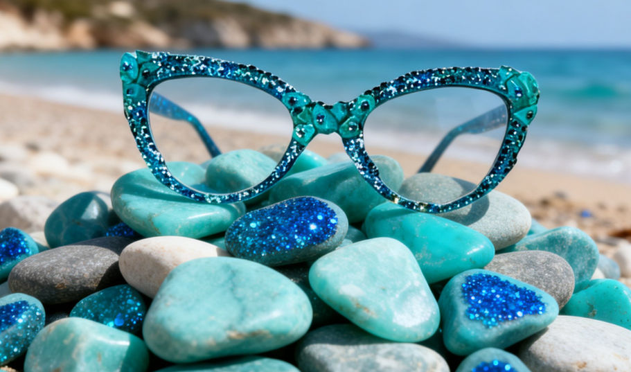 Blingaratti™ Seraphina will elevate your eyewear with these striking cat eye frames featuring aquamarine genuine Austrian crystals paired with genuine turquoise stones. The semi-transparent design creates a sophisticated depth, while the carefully placed gemstone accents add refined glamour. Perfect for those seeking a distinctive accessory that balances contemporary style with timeless elegance. These frames deliver both visual impact and wearable artistry. Your Blingaratti™ glasses come with their own protective case.